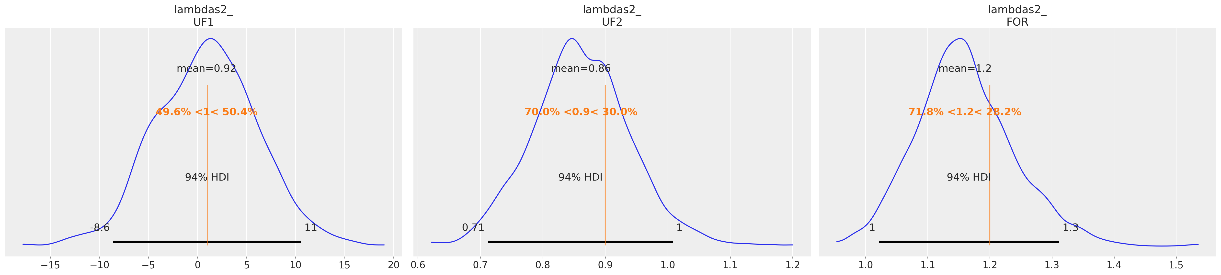 az.plot_posterior(idata, var_names=["lambdas2_"], ref_val=fixed_parameters["lambdas2_"]);