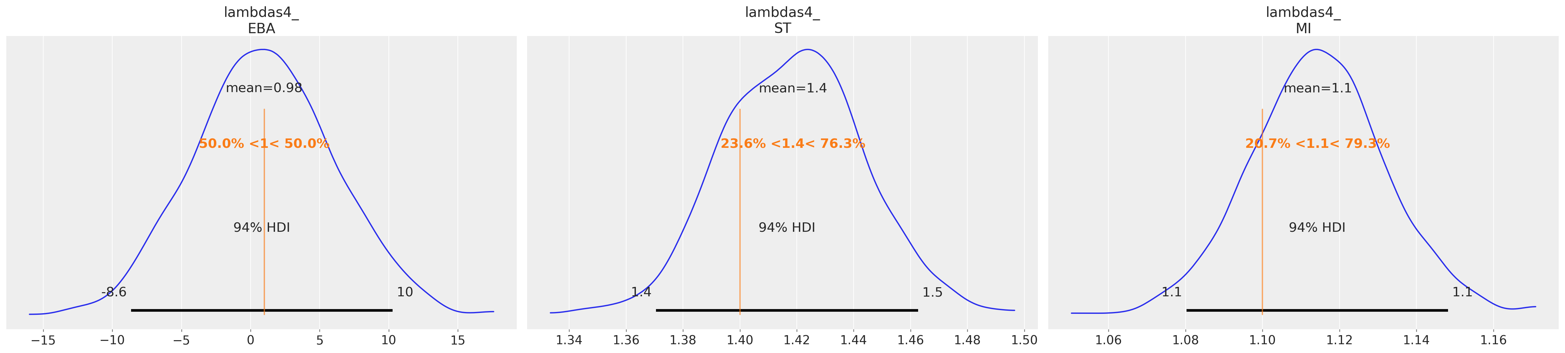 az.plot_posterior(idata, var_names=["lambdas4_"], ref_val=fixed_parameters["lambdas4_"]);