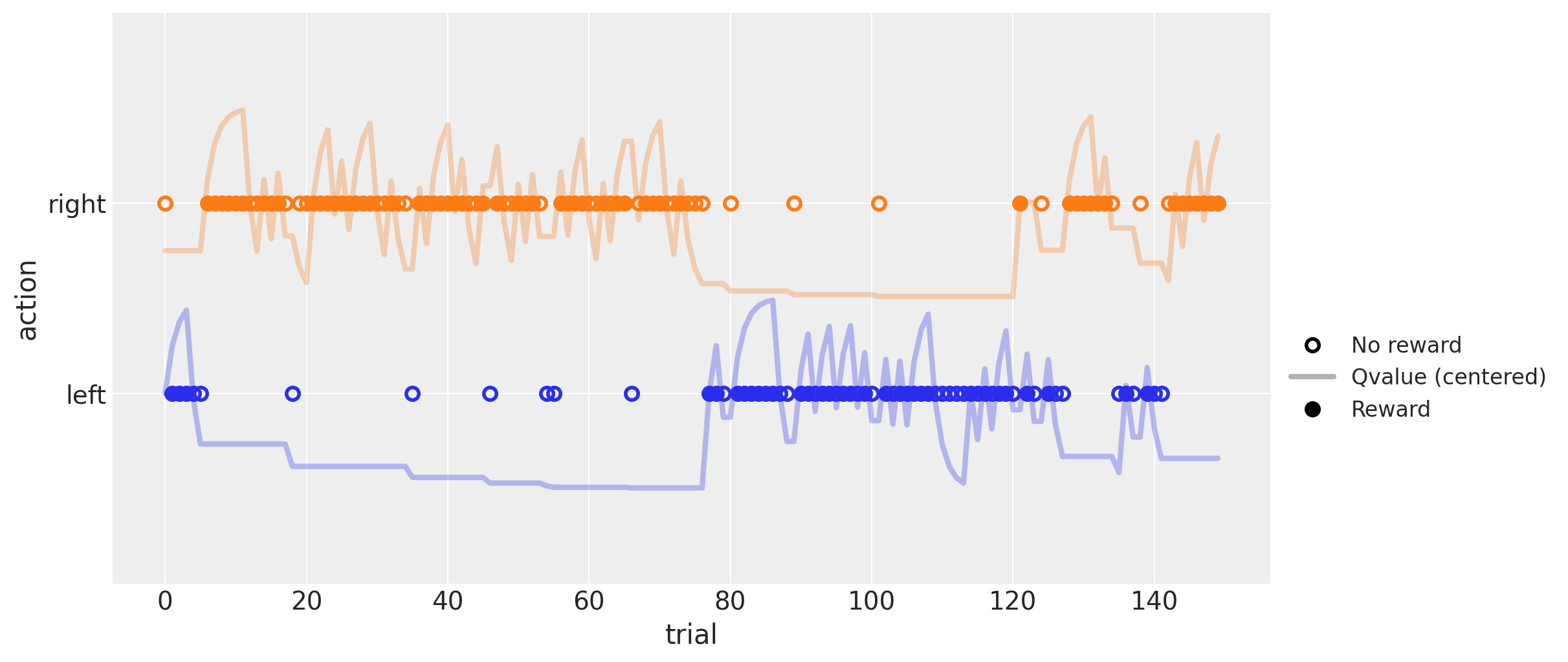 Fitting a Reinforcement Learning Model to Behavioral Data with PyMC#