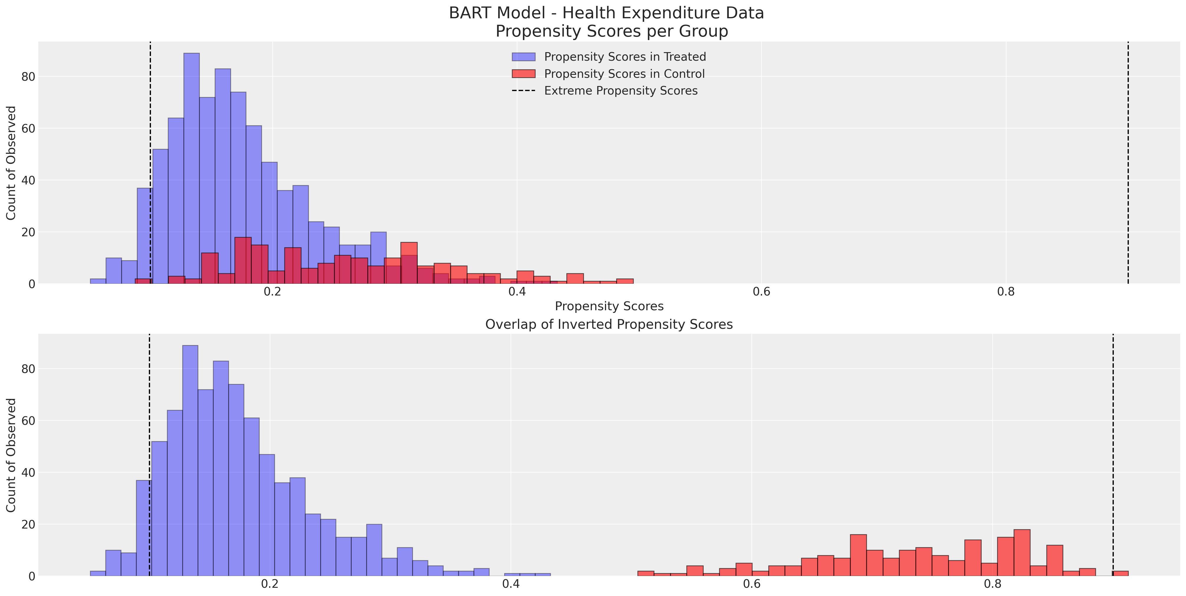 Propensity scores are a useful tool for thinking about the structure of causal inference problems. They directly relate to considerations of selection effects and can be used proactively to re-weight evidence garnered from observational data sets. They can be applied with flexible machine learning models and cross validation techniques to correct over-fitting of machine learning models like BART. They are not as direct a tool for regularisation of model fits as the application of bayesian priors, but they are a tool in the same vein. They ask of the analyst their theory of treatment assignment mechanism - under strong ignorability this is enough to evaluate policy changes in the outcomes of interest.