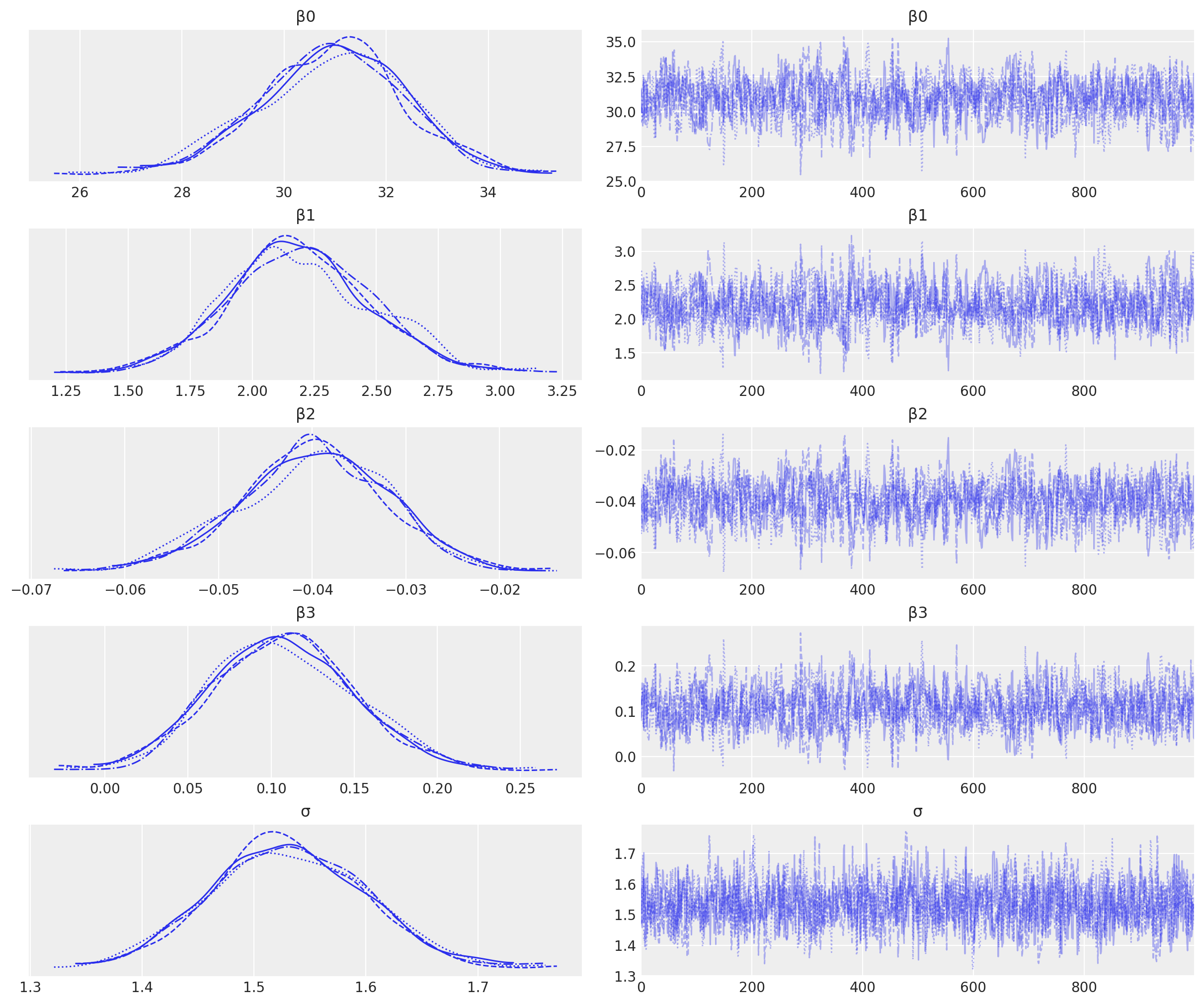 y = pm.Normal("y", mu=β0 + (β1 * x) + (β2 * x * m) + (β3 * m), sigma=σ, observed=y)