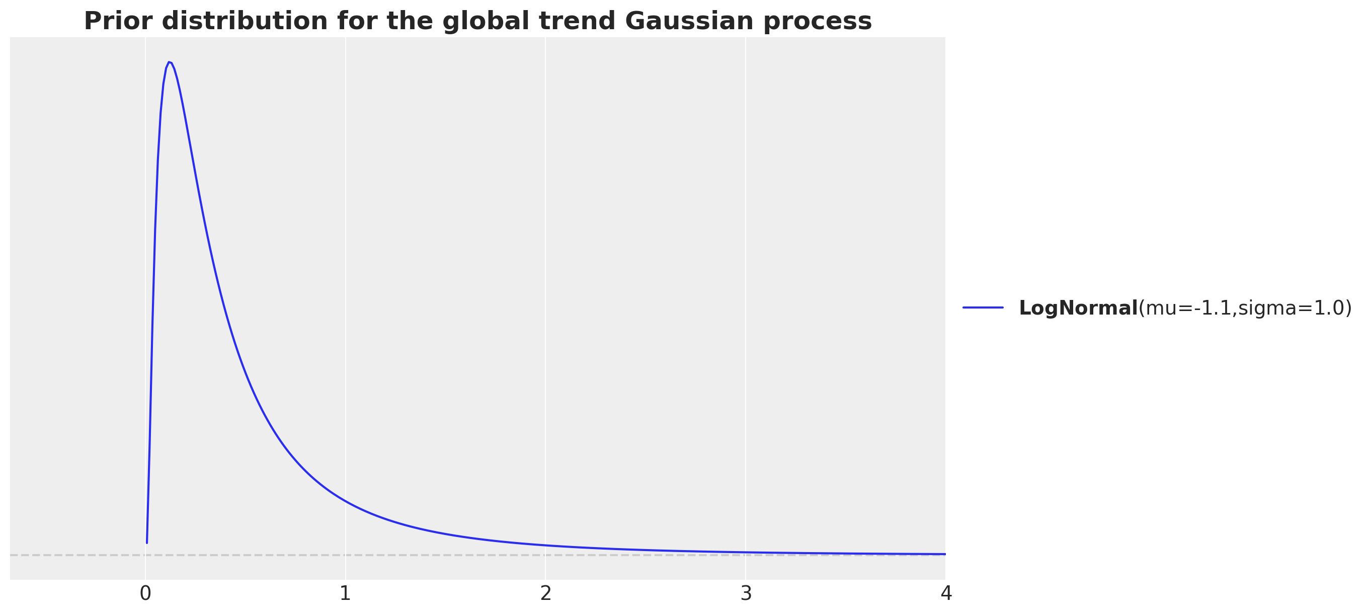 Where does the Hilbert Space come from? It turns out that the orthonormal basis comes from the spectral decomposition of the Laplace operator on a compact set (think about the Fourier decomposition on the circle, for example). In other words, the basis functions are eigenvectors of the Laplace operator on the square-integrable-functions space \(L^{2}([-L, L])\), which is a Hilbert Space. Returning to the class HSGP, the two most important parameters are: