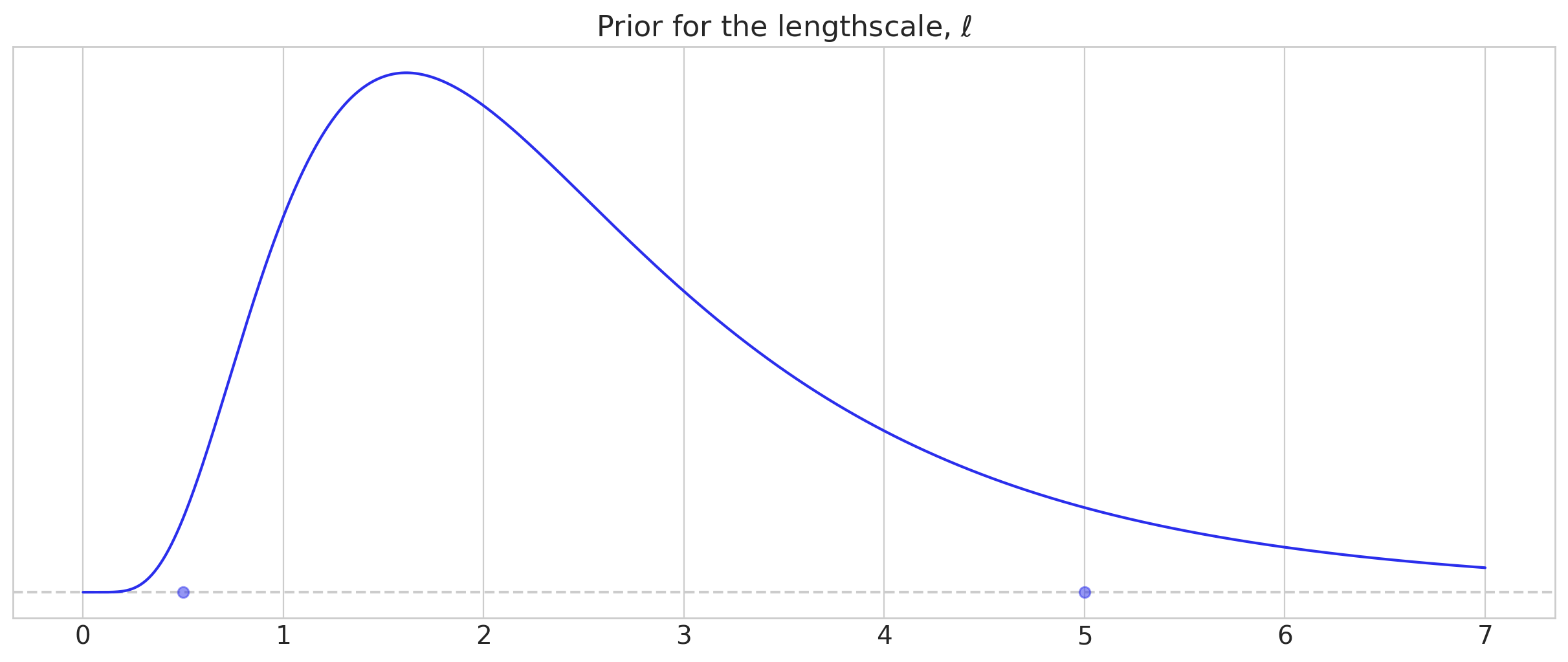 ax.set_title(r"Prior for the lengthscale, $\ell$")